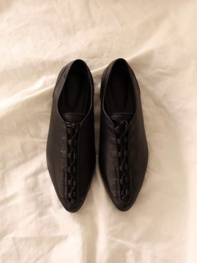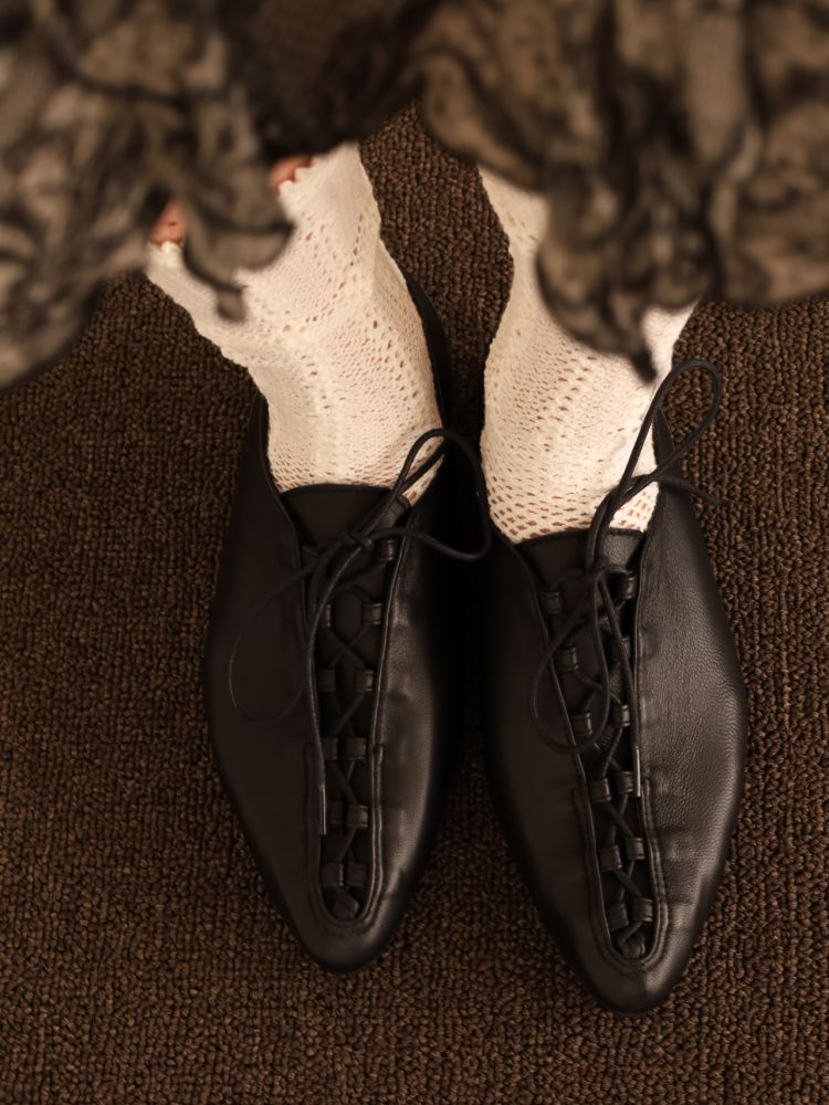 ‘‘Noma is a vintage-inspired sneaker, drawing from the distinctive lace structure of trekking shoes. Its structural detailing gently wraps and secures the foot, placed with restraint upon a classic silhouette. A refined toe line, supple lamb leather, and balanced cushioning come together to create a sense of ease—one that flows naturally through the rhythm of everyday city life.’’